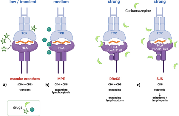 Pichler et al. wrote one review article and one original paper for this issue. Long ago, the authors proposed the p-i mechanism (pharmacological interaction with immune receptors), now widely accepted, to explain T cell activation. Drug reaction with eosinophilia and systemic symptoms (DReSS), also called drug-induced hypersensitivity syndrome (DIHS), is a severe T cell-mediated hypersensitivity reaction, presumably involving a distinct p-i mechanism. In the review article, they propose four phases based on the status of p-i stimulated T cells: the clinically silent phase, the acute phase, the viraemic and autoimmunity phase, and the chronic phase.